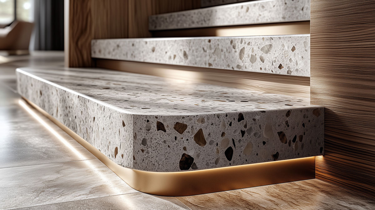Maßgeschneiderte Innentreppen aus Fliesen oder Naturstein setzen nicht nur optische Akzente, sondern bieten auch hohe Sicherheit. XHemali plant und verlegt Ihre Treppe professionell nach Ihren Wünschen.